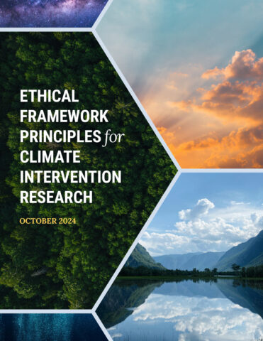 Climate intervention research requires guidance at local, regional, and global levels. AGU, in conjunction with a global panel of experts, has facilitated the development of Ethical Framework Principles for Climate Intervention Research, which provides guidance for ensuring: 1. Responsible research, 2. Climate justice, 3. Inclusive public participation, 4. Transparency, and 5. Informed governance.