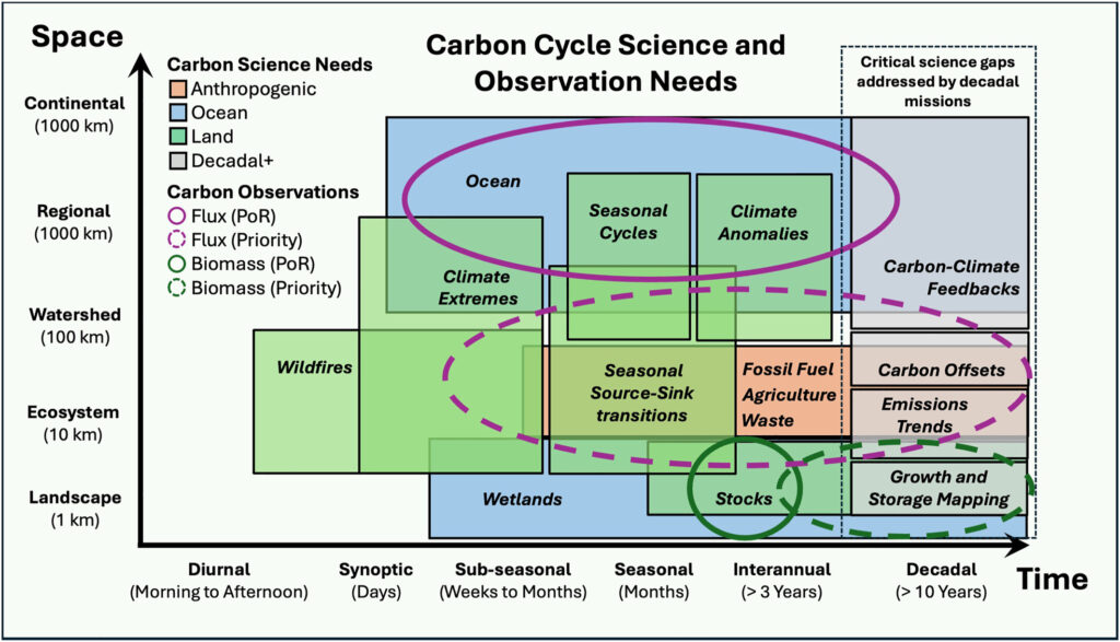 As described in Parazoo et al. [2025], the carbon cycle community envisions a carbon observation system leveraging GHG partial columns in the lower and upper troposphere to weave together information across scales from surface and satellite EO data, and integration of top-down / bottom-up analyses to link process understanding to global assessment. Such an actionable system that integrates existing and new EO data and inventories using advanced top-down and bottom-up analyses can help address the diverse and shifting needs of carbon management stakeholders.