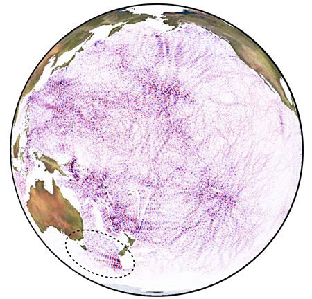 This situation exists in the Tasman Sea (Figure 1). An internal tidal wave with a power density of 4 kilowatts per meter is generated on the Macquarie Ridge south of New Zealand. It travels 1400 kilometers northwest over the course of 4 days and strikes the eastern slopes of Tasmania. What happens next is what we hoped to find out.