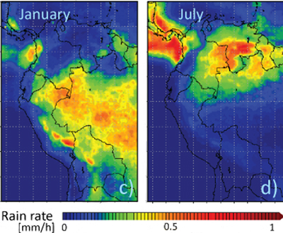 ![Fig. 2. The amount of hourly precipitation (millimeters per hour) in January and July averaged over the years 1998 to 2010 based on data from the Tropical Rainfall Measurement Mission. Credit: Excerpted from Rabatel et al. [2013] CC BY 3.0 license.](https://eos.org/wp-content/uploads/2015/10/15-0262_Sicart_4888_F02_Web.jpg)