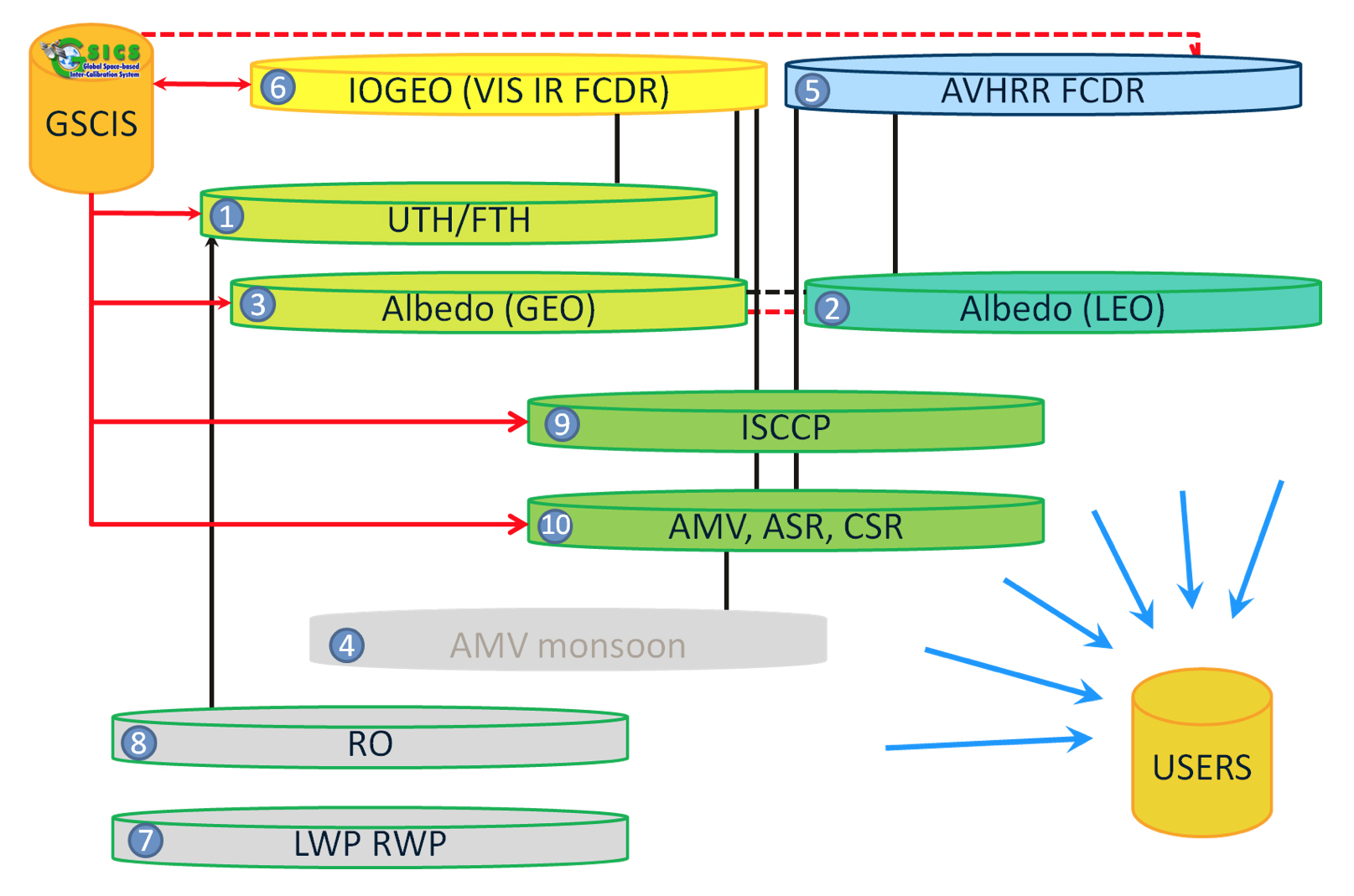 The Sustained, Coordinated Processing of Environmental Satellite Data for Climate Monitoring (SCOPE-CM) group is a network of agencies and operators of environmental satellite systems that promotes the continuous and sustained provision of high-quality data sets from satellites for climate monitoring. The SCOPE-CM group has been active since 2008 and is now in its second phase, the objectives of which are to increase the sustainability (reliable production and updates) and maturity of climate data record (CDR) generation capabilities and to promote structures for the generation of fundamental and thematic CDRs (Figure 1).