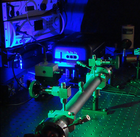 Absorption spectroscopy offers precise, accurate, and fast measurement capabilities that are a prerequisite for determining trace gas concentrations on small temporal and spatial scales. Cavity-enhanced absorption spectroscopy (CEAS) uses highly reflective mirrors at each end of a measurement cell in a resonant configuration to significantly extend the effective absorption path lengths to several kilometers (see photo). This enables us to detect gases at very low ambient concentrations.