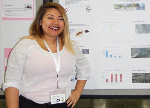 “For me, [the conference] was the turning point in my decision as a student to take my studies further. I met scientists from New York, Australia, India, and more,” said Akilah Robinson (pictured in the photo), a college freshman who presented a poster as a high school senior. “I also met local scientists. But out of everyone I met, there was one thing in common. They all had a passion and they all loved what they did. They all dedicated themselves to the contribution of new studies for science, and it was absolutely amazing to witness.”