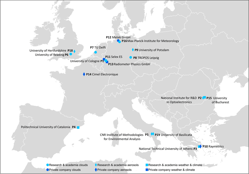 ITaRS comprises 10 associated partners—five of them manufacturers of meteorological instruments, five of them academic research institutions. ITaRS participants work at these partners’ facilities, focusing on applying ground-based remote sensing instrumentation to improve our understanding of aerosols, clouds, and their interaction in both climate and weather. Figure 1 shows the geographical distribution of the network.