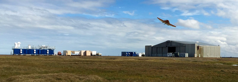 Located in the Prudhoe Bay oilfield region on Alaska’s North Slope, approximately 250 kilometers east-southeast of the town of Barrow, Oliktok Point provides exciting new opportunities to evaluate regional variability in the U.S. Arctic. These opportunities come not only from the added UAS capabilities but also from the fact that the DOE added an instrument observatory at Oliktok Point. This observatory expands upon DOE’s extensive previous efforts in this environment, including nearly 20 years of observations at Barrow, a shorter deployment at Atqasuk (90 kilometers south of Barrow), and numerous field campaigns.